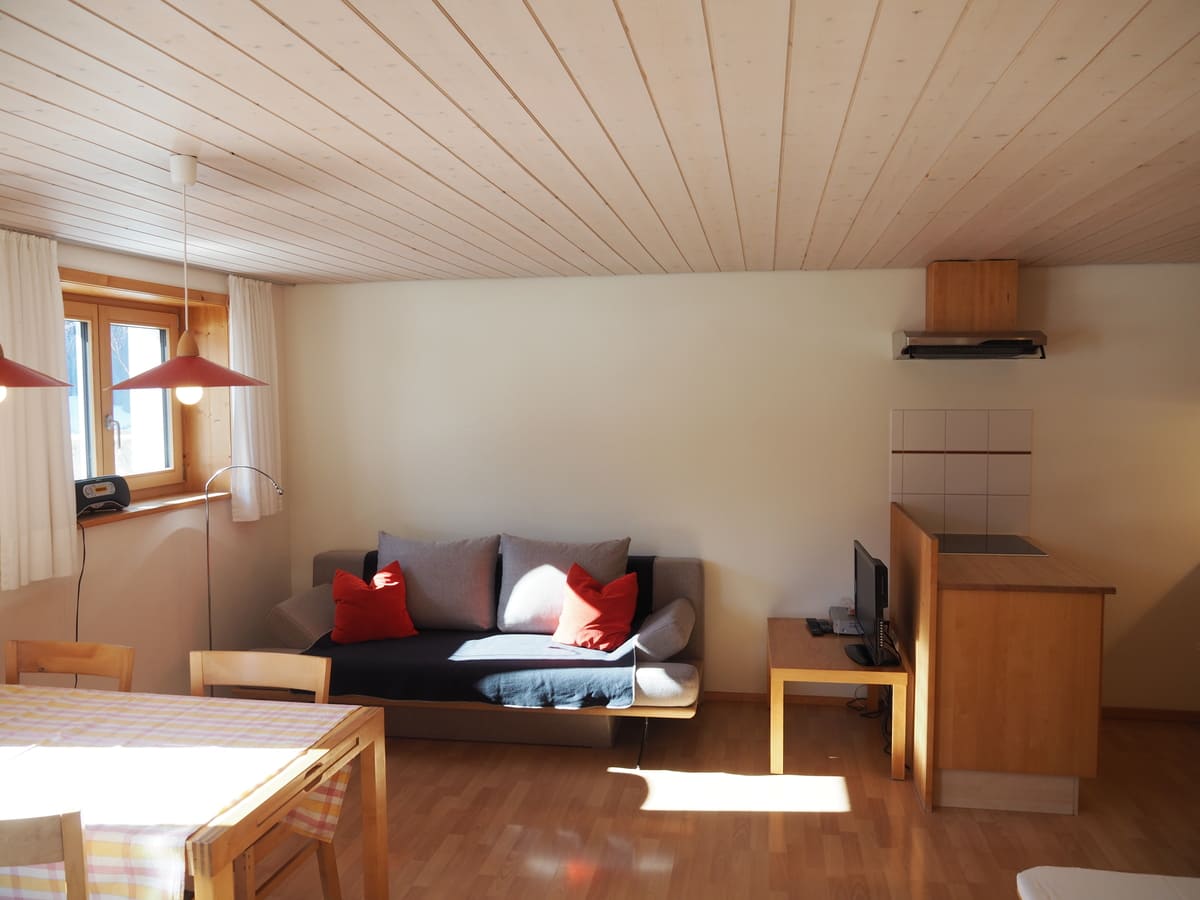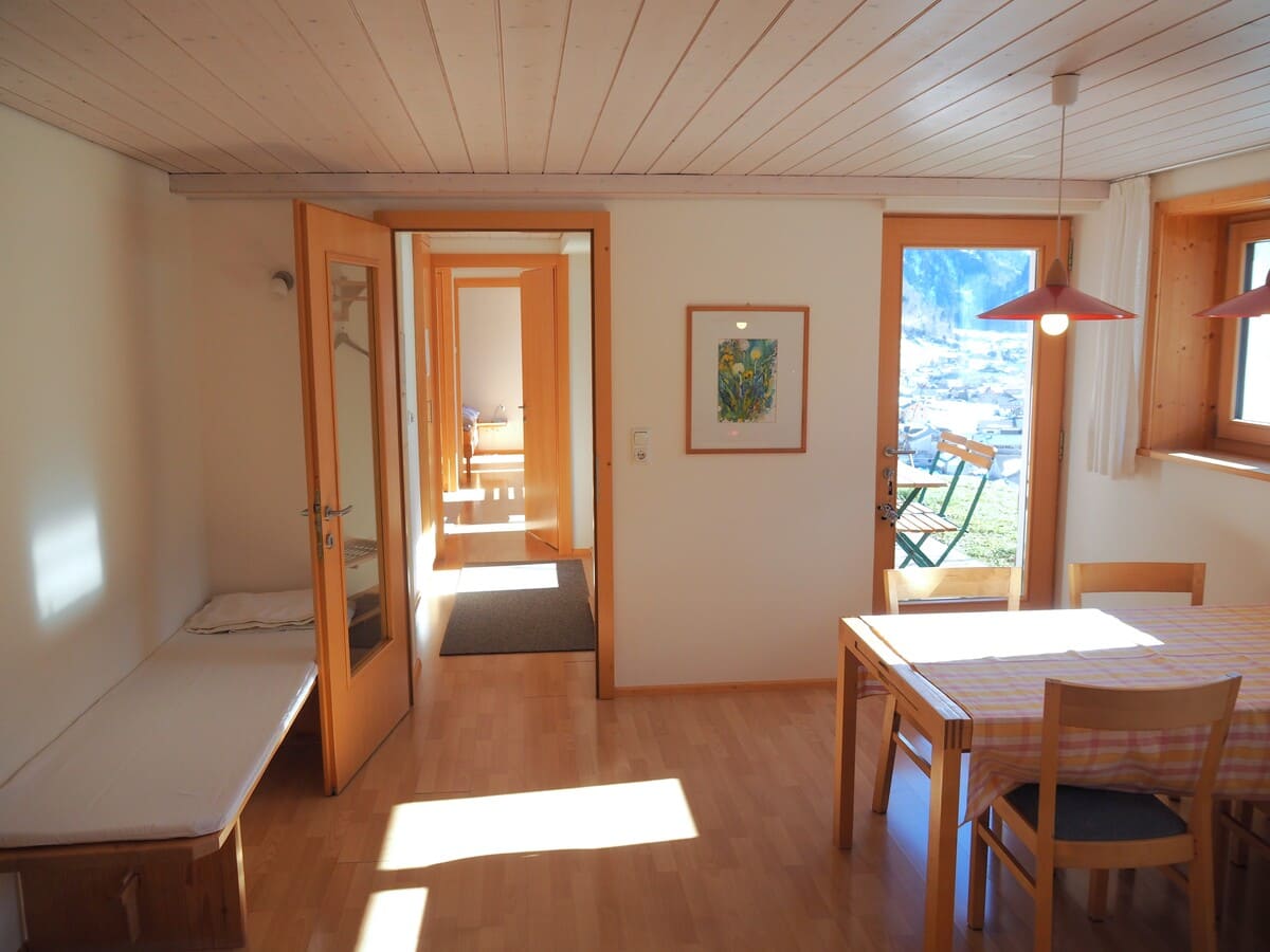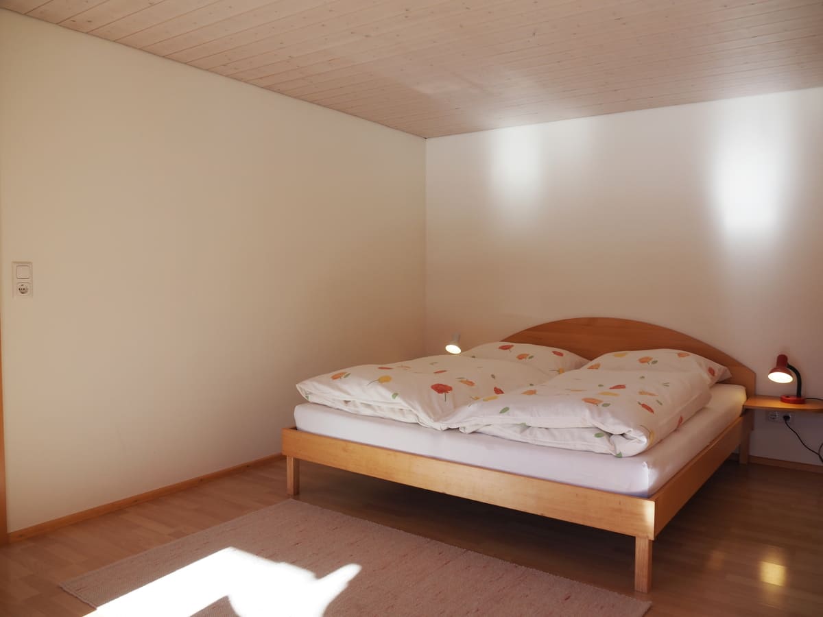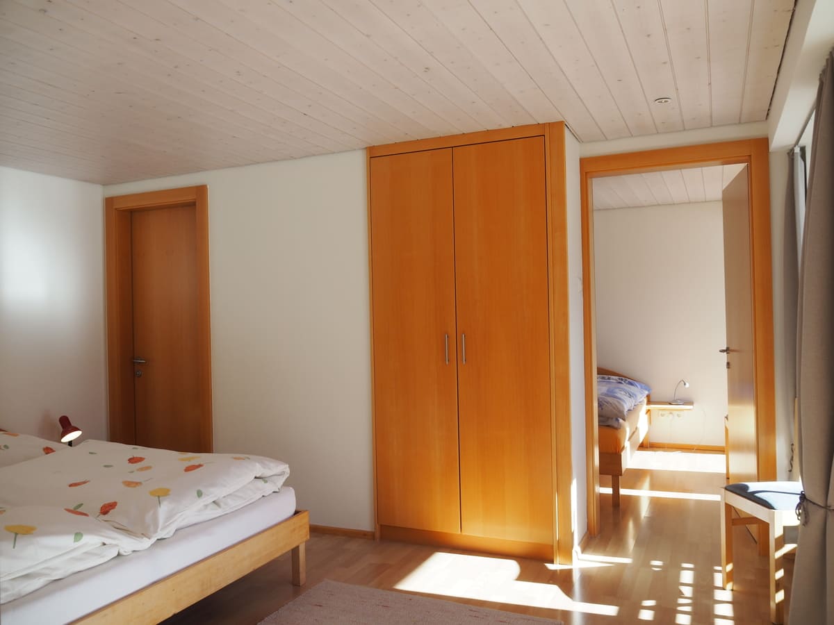 Die Ferienwohnung ist modern, hell und gemütlich eingerichtet. Der Wohn- und Essbereich bietet eine gut ausgestattete Küche, Esstisch, eine Liegebank sowie ein großes Sofa. Auch ein Fernseher, Bücher, Spiele und viel Spielzeug für die Kinder sind vorhanden. Die beiden getrennten Schlafzimmer verfügen über jeweils eigene Zugänge zu Bad und Terrasse und sind mit hochwertigen Matratzen und Decken bestückt. Gepäck, Ski- und Bergausrüstung lagern Sie bequem in unseren Abstell- und Trockenplätzen, und unsere Liegestühle und Hängematten sind perfekt für einen entspannten Abend nach einem langen Tag draußen im Freien.